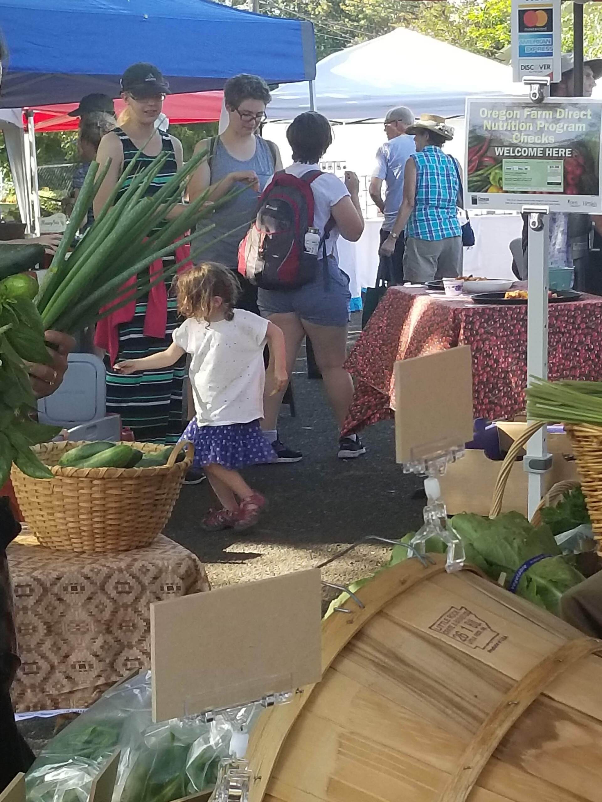 today! Oregon Trail (SNAP) cards and all WIC coupons are accepted at the market, as well as debit cards and cash. Please see the information booth to redeem your tokens, good towards everything Snap approved.